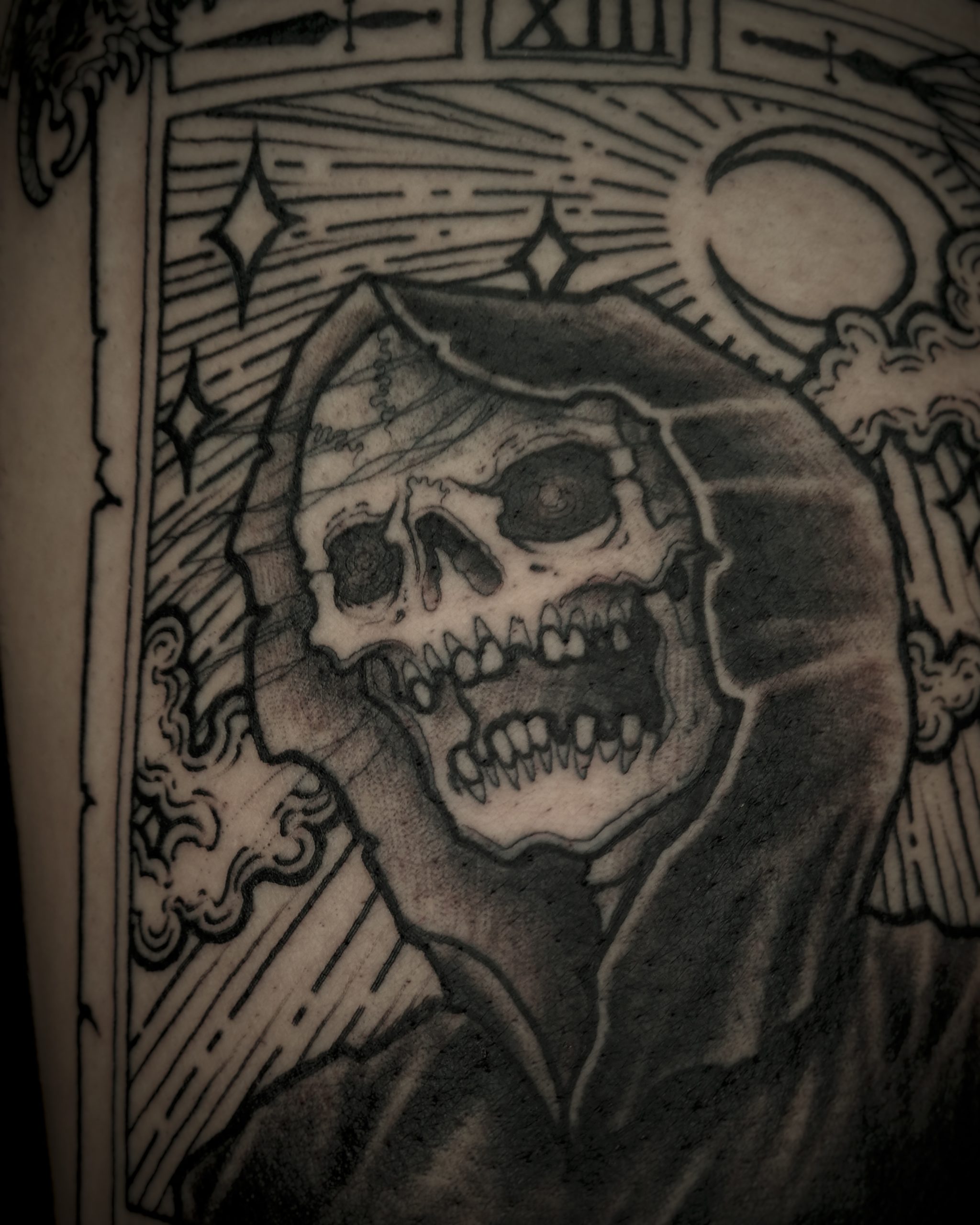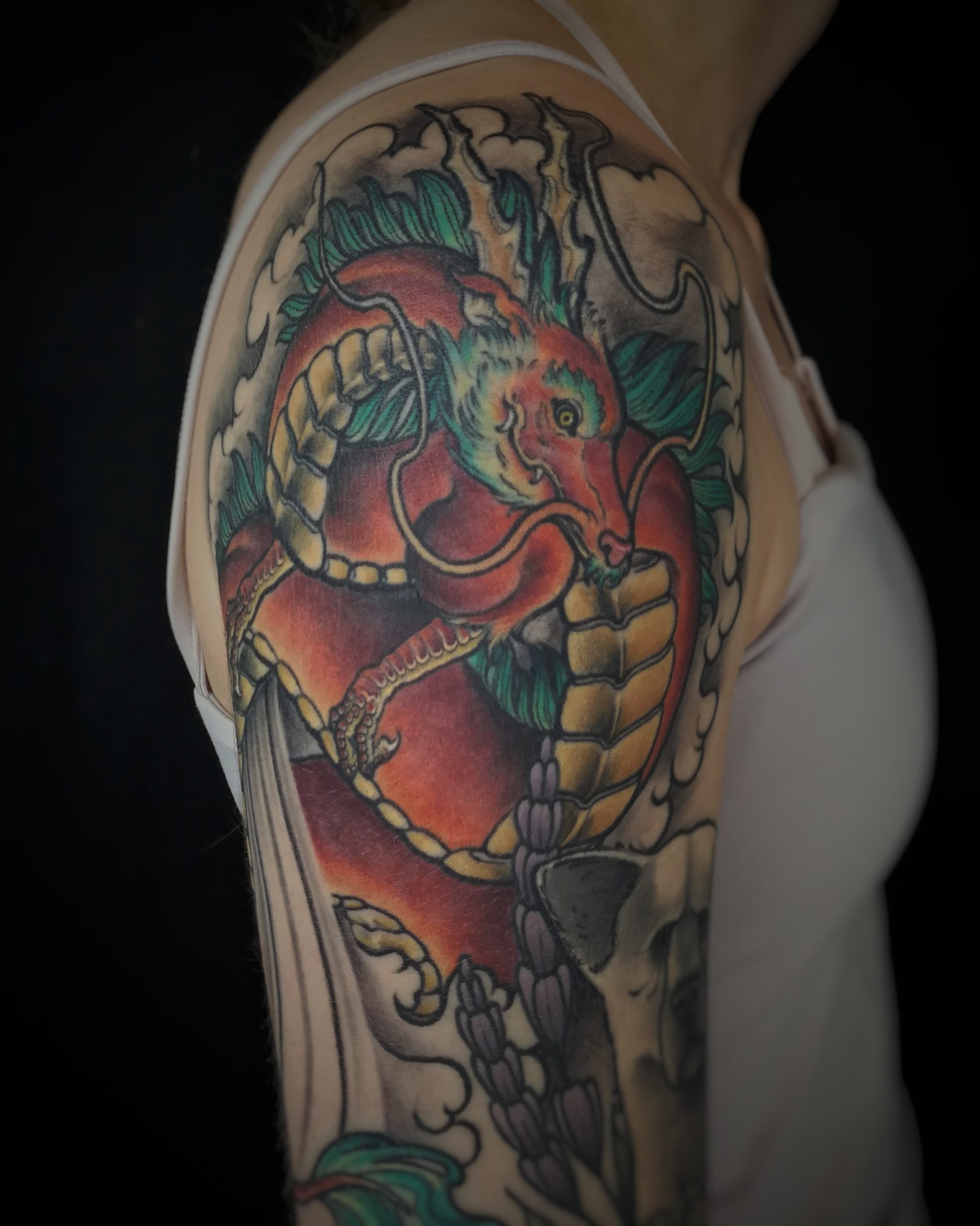 René ist seit über 12 Jahren Tattoo-Artist. Er zeichnet so gut wie alles selbst, auch Freihand direkt auf die Haut. Seine Fachbereiche sind hier ganz klar farbige Tattoos in den Stilen: Neotraditional, Old-/New-School und am liebsten Asiatische Motive, vor allem aus der Tier- und Pflanzenwelt. Seine Inspiration holt sich René daher vor allem aus der Natur, Geschichte und Mythologie.