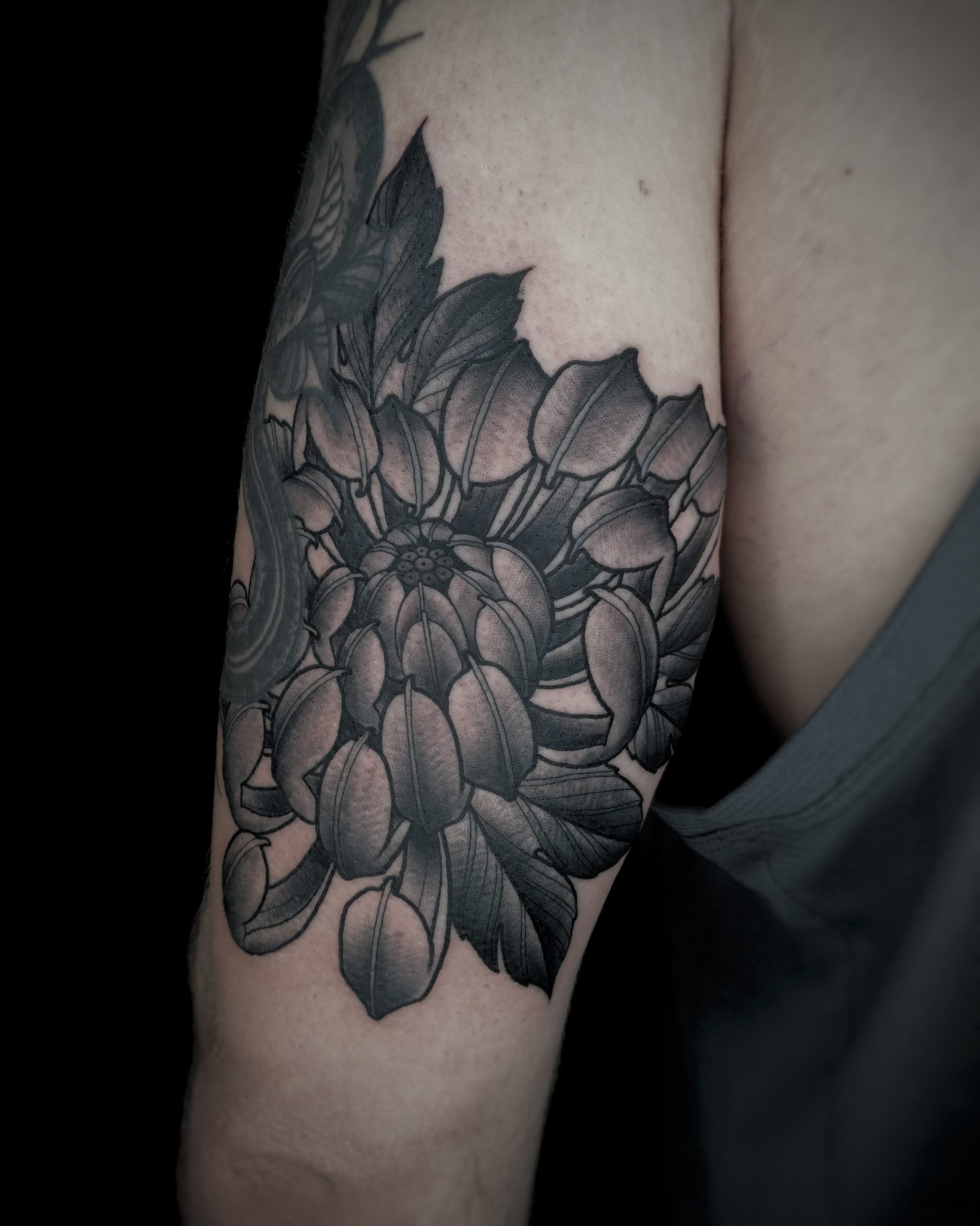 Renés Fachbereich: Neotraditional, Old-/New-School und am liebsten Asiatische Motive, vor allem aus der Tier- und Pflanzenwelt. René setzt auf Wunsch auch Lettering + Fineline-Projekte um.