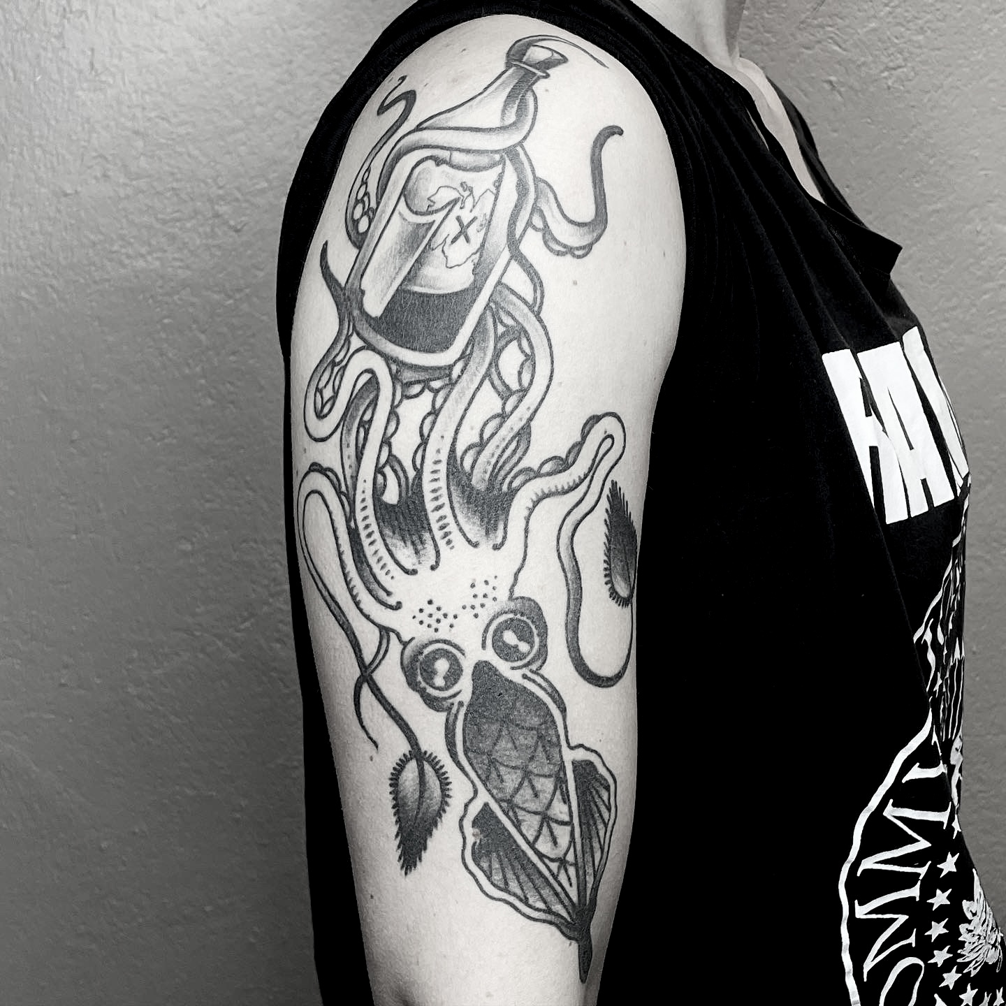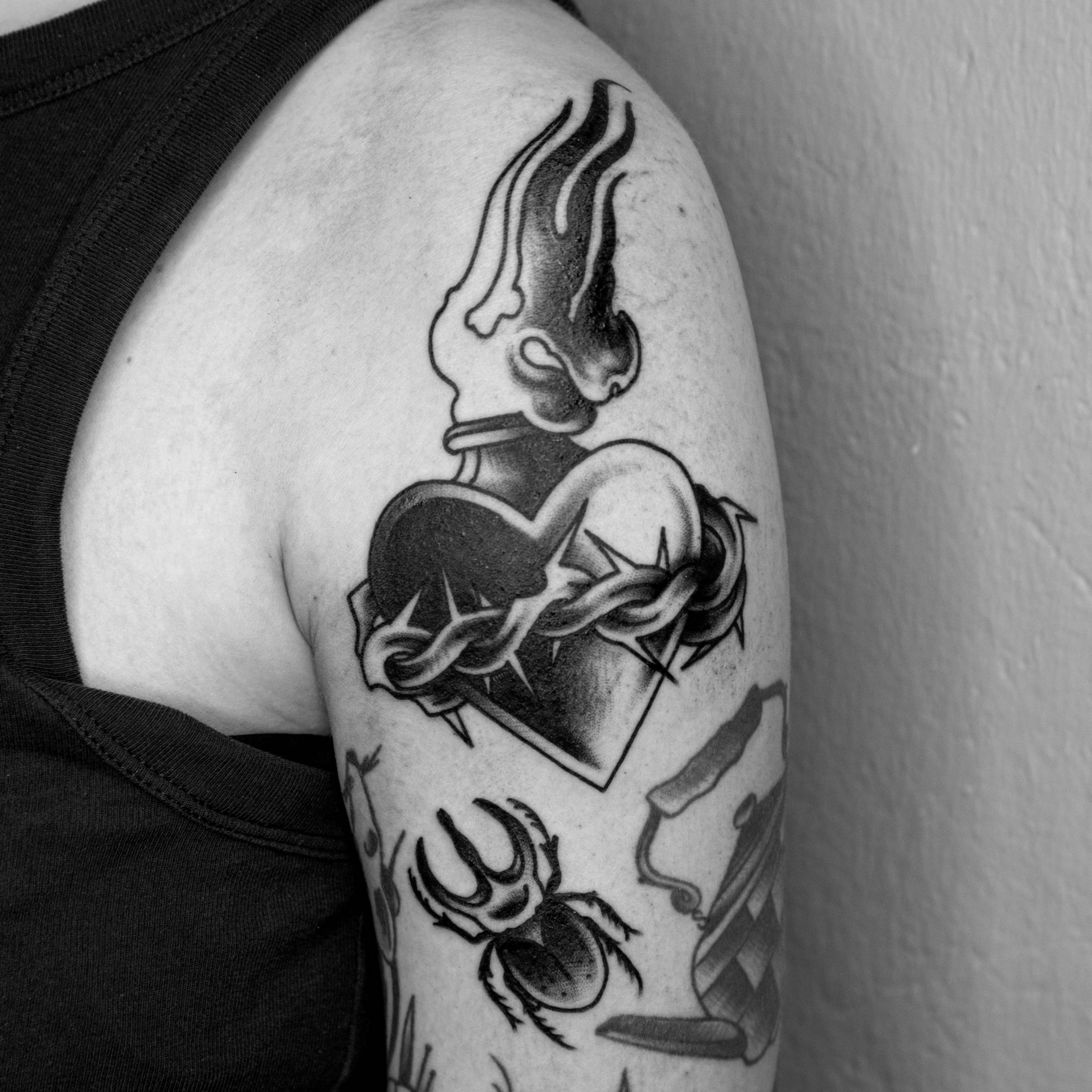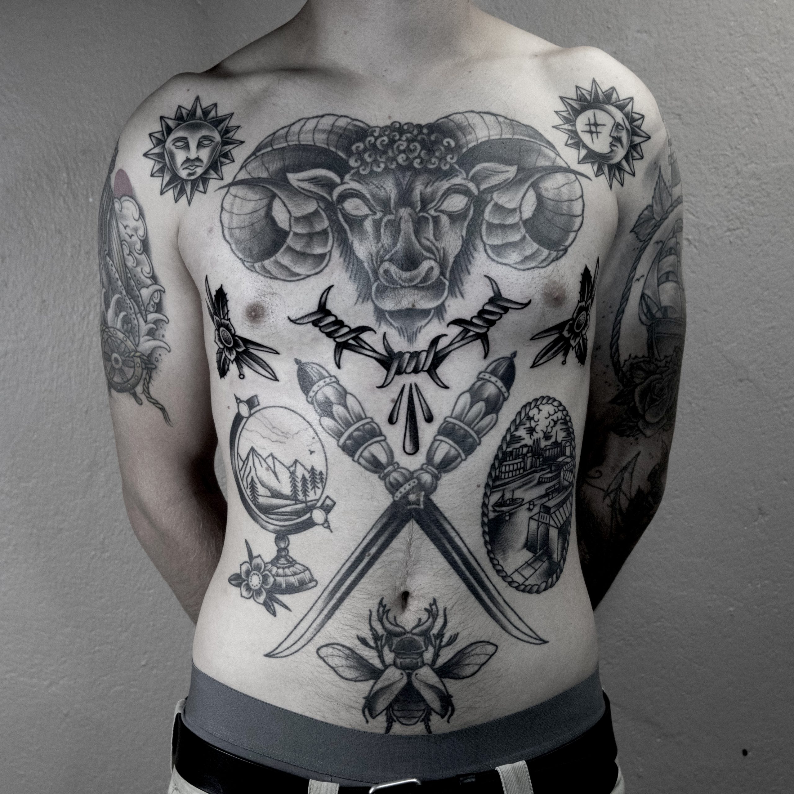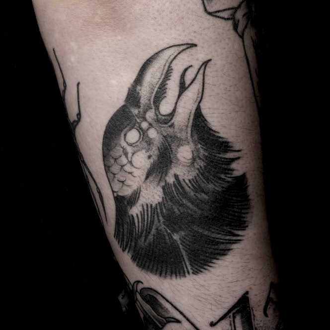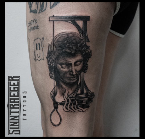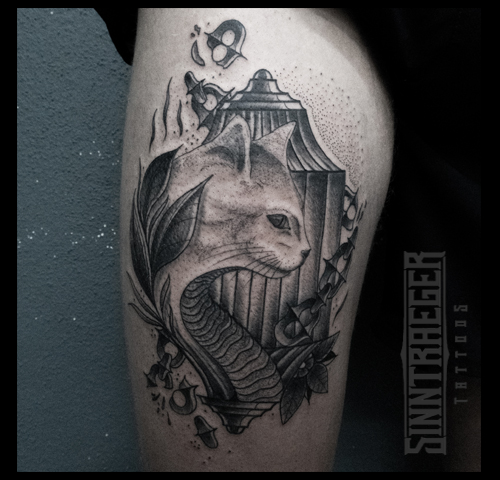 Sebastian Adam ist seit 2014 Teil des Künstlerkollektivs um Sinnträger Tattoos. Seit dem lebt und arbeitet er im Stadtteil Connewitz in Leipzig. Er legt großen Wert auf den künstlerischen Anspruch seiner Arbeiten, dabei fließen seine 15 jährige Zeichenerfahrung und die Inspiration aus seinem täglichen Leben in seine Arbeiten mit ein. Durch sein großes Interesse an der Kunst, in vielerlei Hinsicht, ist seine Stilrichtung sehr breit gefächert. Seine Arbeiten gehen über Blackwork, Ignorantstyle, Dotwork bis hin zu Oldschool, aber auch das ein oder andere Realistic- oder Black and Grey-Element lässt in seinen Arbeiten wiederfinden. Neben der Tätigkeit als Tätowierer arbeitet Sebastian immer an neuen Ausstellungen. Seine Exponate entstehen aus Fotografie, Illustration und Malerei.